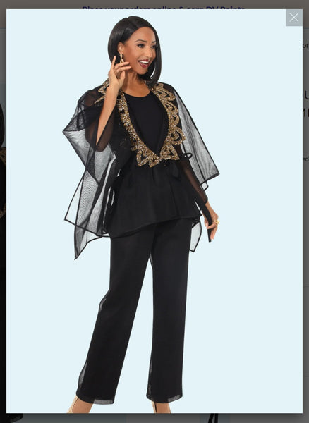 Donna Vinci Couture 5866 3PC Jacket/Cami/Pant Suit Mesh Elaborate Beaded Design Stretched Pants Fully Lined