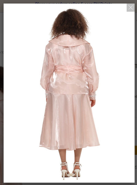 Donna Vinci Style 12169 2PC Long Sleeve Jacket Novelty Organza Fabric Trimmed With Rhinestones And Pearls Belt Included