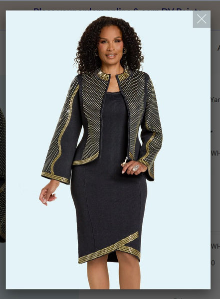 Donna Vinci Knits Style 13448 2PC Knit Jacket/Dress Suit Exclusive Knitted Yarn Elaborately Trimmed With Rhinestone And Gold Grommets Sleeveless Dress