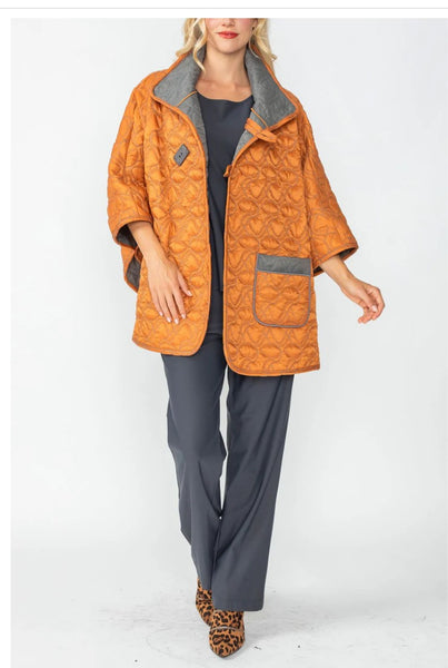 IC Collection 4779J 1PC Olive and Lime Reversible Poncho 3/4 Sleeves. Reversible Sides.
