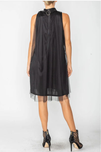 IC Collection 5867T Sleeveless Tule Fabric Tunic With Pinned Flower
