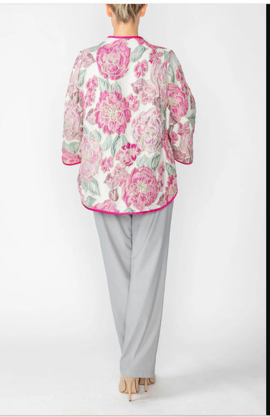 IC Collection 6097J EMBO JACQUARD COLLARLESS 3/4 SLV. ONE BUTTON JACKET