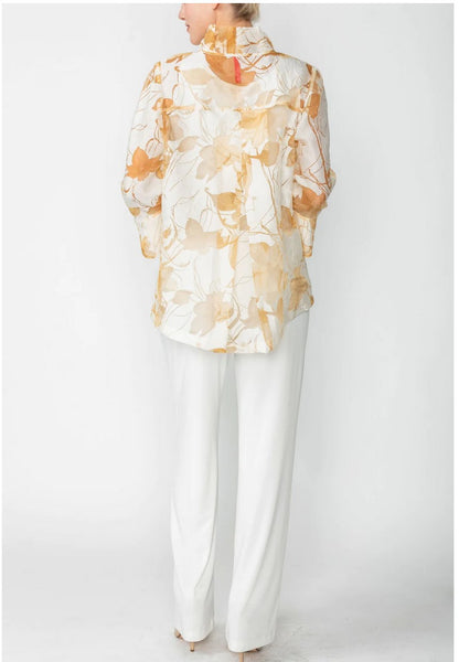 IC Collection 6511J 1PC Long Sleeve BURN OUT PLEATED COLLAR & BACK 3/4 SLV JACKET 81% RAYON, 19% POLYESTER