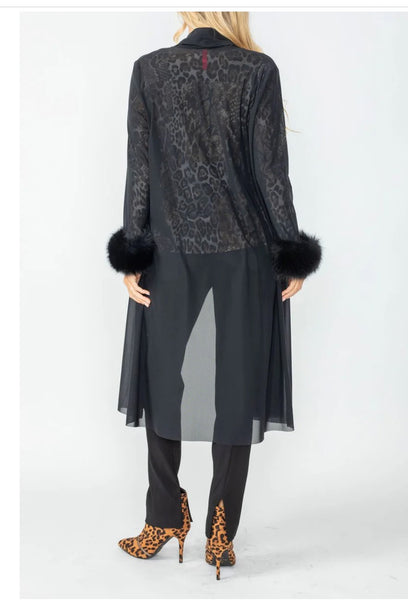 IC Collection 6963J 1PC Long Jacket With Long Sleeves With Feather Cuffs Fabric Mesh 85% Nylon 15% Spandex