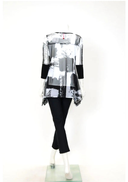 IC Collection 7287T Bateau Neckline Long Sleeves Abstract Mesh Pant Tunic 96% POLYESTER, 4% SPANDEX