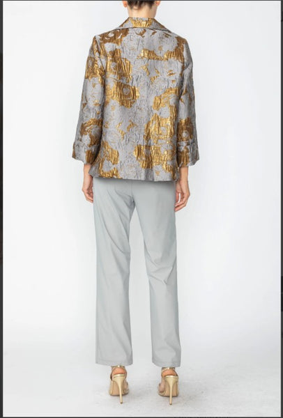 IC Collection 7537J 1PC Gray Button Front Jacket With Long Sleeves Button Front.Material: 82% Polyester, 18% Metallic.