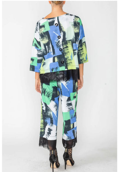 IC Collections 4714T 1PC Top Bottom Mesh Layered AND Back Button Point Boxy Top