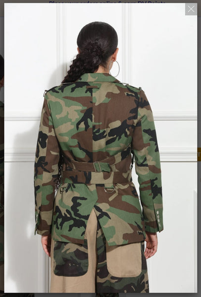 Luxe Moda LM-391 - Camo - Button Down Belted Camo Jacket
