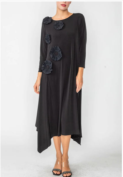 IC Collection 6153D 1PC Bateau Neckline Long Sleeve Dress Asymmetrical Hemline 95% POLYESTER, 5% SPANDEX