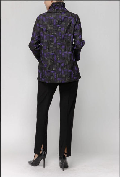 IC Collection 7353J 1PC Purple Wire Collar Jacket With Long Sleeves Zip-Front.Material: 84% Polyester, 12% Metallic, 4% Elastin.