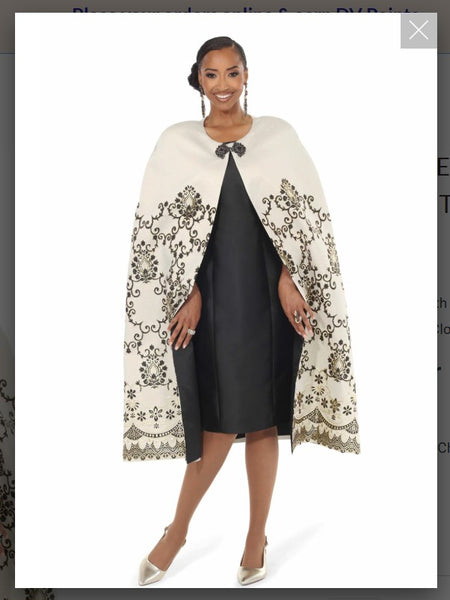Lisa Rene Style 240729 2PC Cape & Dress Set Novelty Fabric With A Beautiful Embroidery Design On Front And Back With A Stunning Buckle Closure