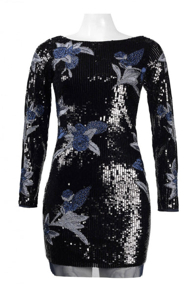 Aidan Mattox MD1E201522 Boat Neck Long Sleeve Zipper Back Floral Sequined Mesh Dress Sequin Mesh (100% Polyester) Lining (100% Polyester)