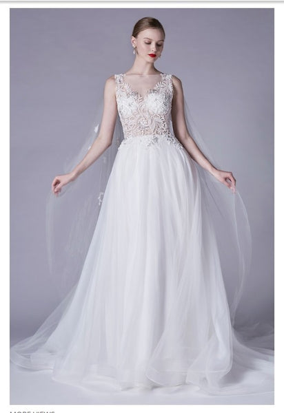 Andrea & Leo Couture A0245 Special Occasion Dress STUNNING BEADED V-NECKLINE TULLE GOWN WITH A BEADED TULLE CAPE