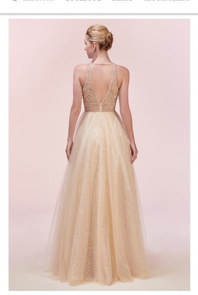 Andrea & Leo Couture A0519 Women Special Occasion Dress, Prom Dress Gold Light Bead Tulle Gown