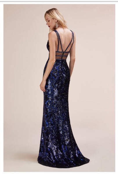 Andrea & Leo Couture A0633 Special Occasion Dress, Prom Dress, Sequined Fitted Gown With A V-Neckline And Open Back