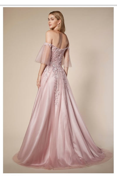 Andrea & Leo Couture A0699 Special Occasion Dress, Prom Dresses OFF THE SHOULDER TULLE AND LACE FLUTTER SLEEVE A-LINE GOWN