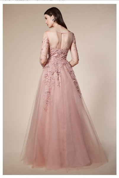Andrea & Leo Couture A0700 Special Occasion Dress, Prom Dress, Bridal Attire ILLUSION LONG SLEEVE LACE AND TULLE A-LINE GOWN
