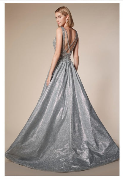 Andrea & Leo Couture A0704 Special Occasion Dress, Prom Dresses BEADED BODICE WITH SILVER ARTEMIS METALLIC A-LINE