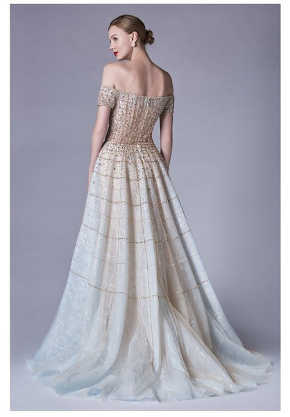 Andrea & Leo Couture Ao724 Special Occasion Dress OFF THE SHOULDER MODERN BEADED BALLGOWN