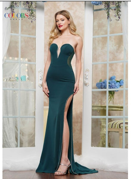 Colors Dress 3632 Scalloped Neck Stretch Crepe Fit & Flare Gown With Rhinestone