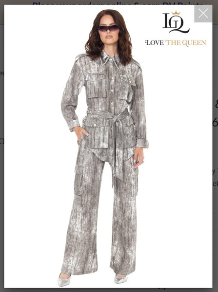 Love The Queen Style 17642 2PC Jacket & Pant Set Distressed Novelty Twilled Fabric